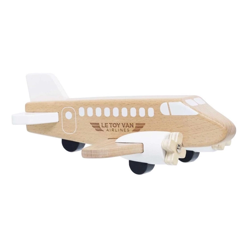 • Този дървен самолет има подвижни части и дизайн, който стимулира въображението.