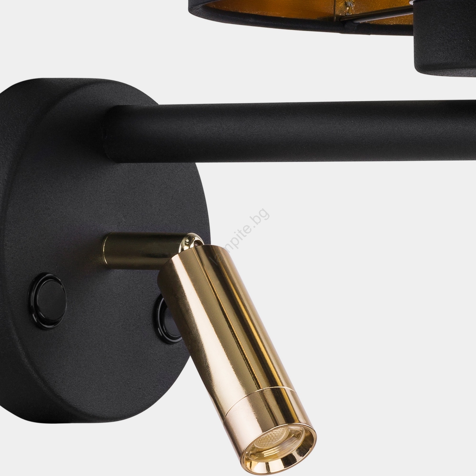 LED Аплик HILTON 1xE27/15W/230V + LED/3W/230V месинг/черен