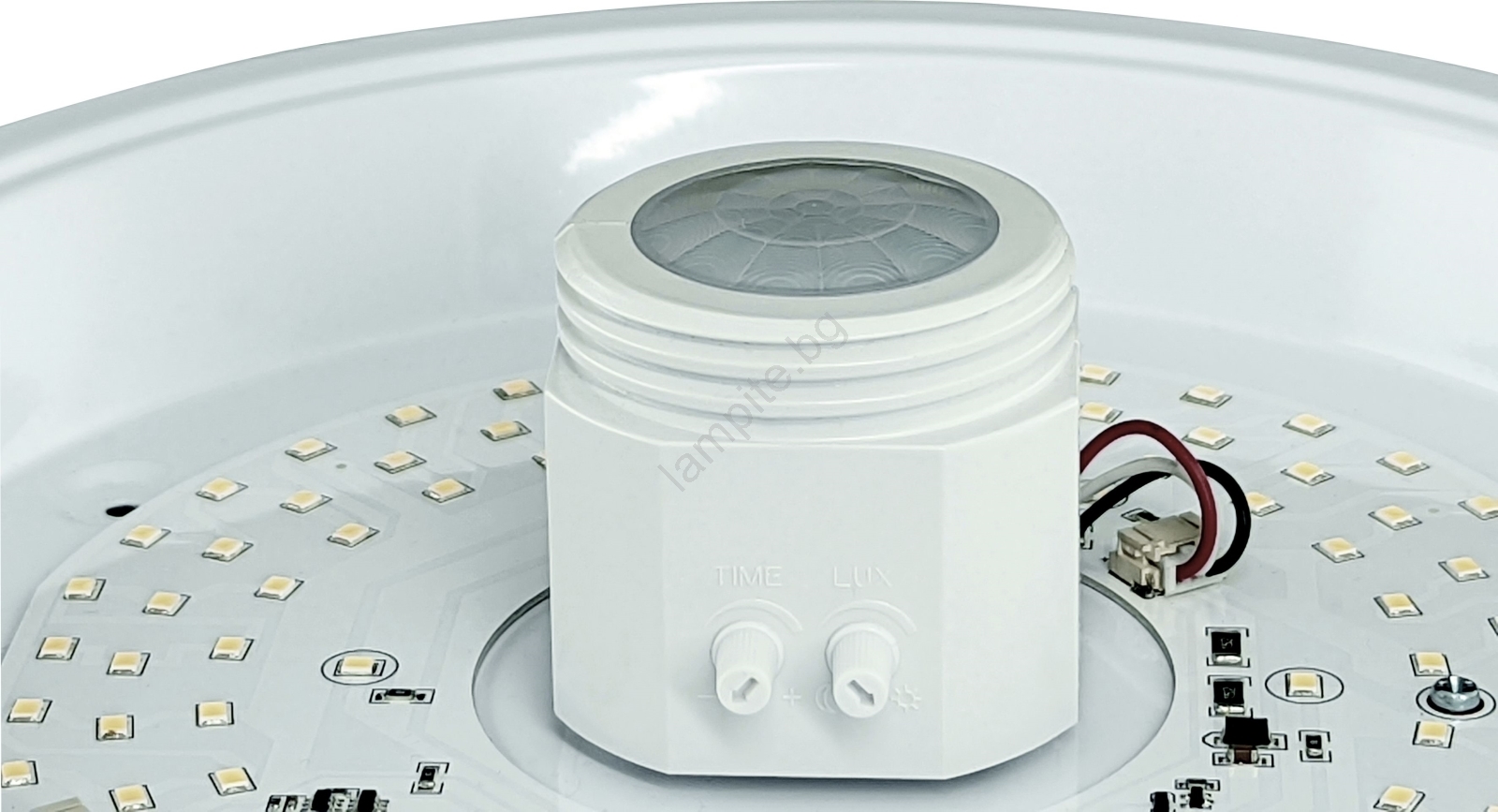 • LED таванно осветително тяло със сензор за движение и сумрак и аварен модул MANA LED/16W/230V 1500 mAh Ø 29 см бяло