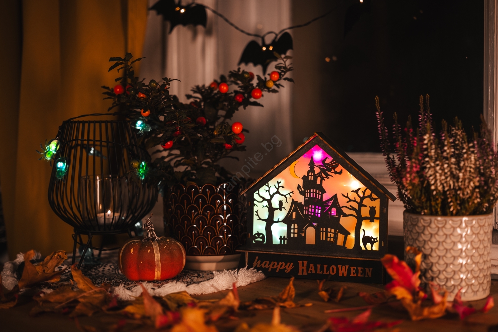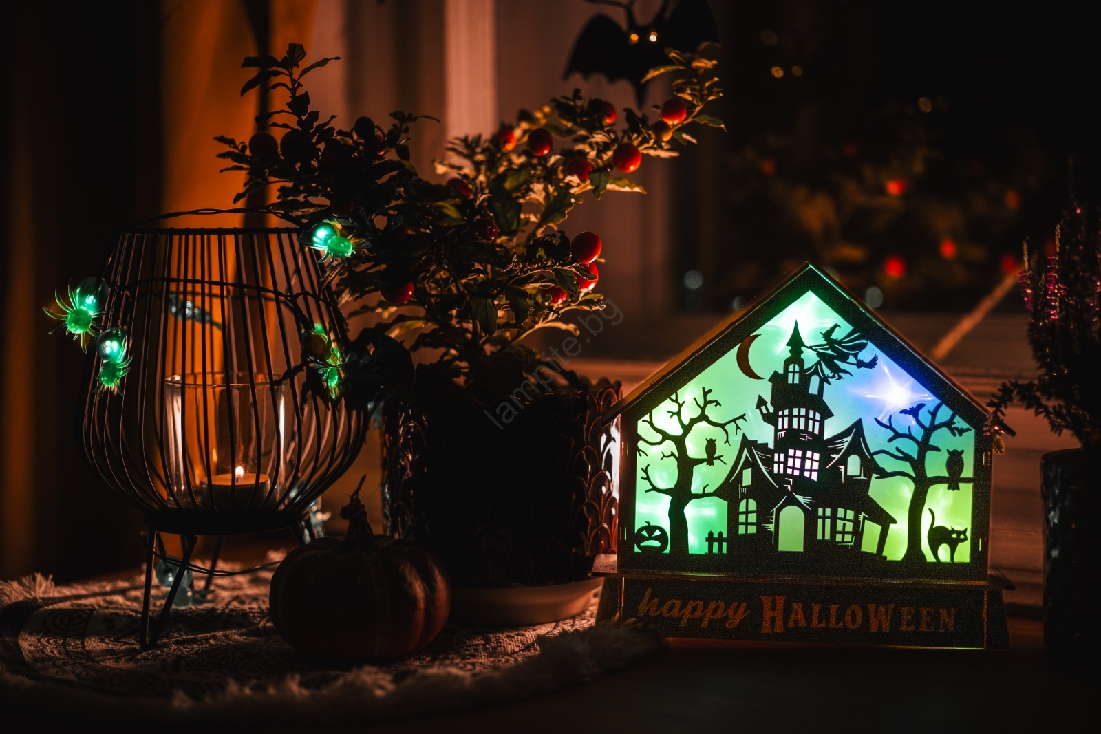 LED Декорация HALLOWEEN LED/2xAA/многоцветен страховит дом