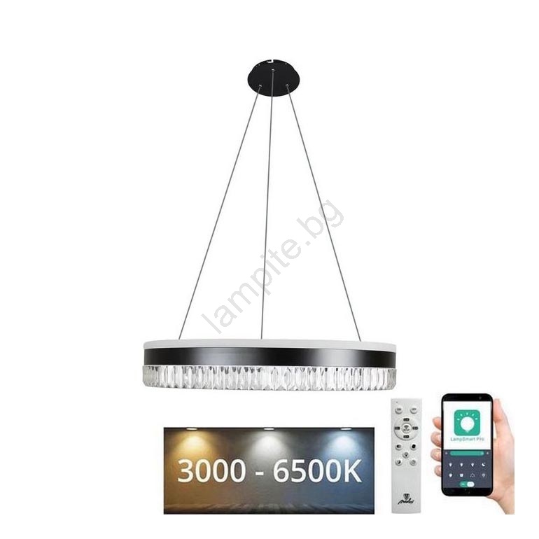 • LED регулируема кристална полилей на кабел LED/80W/230V 3000-6500K черен + дистанционно управление
