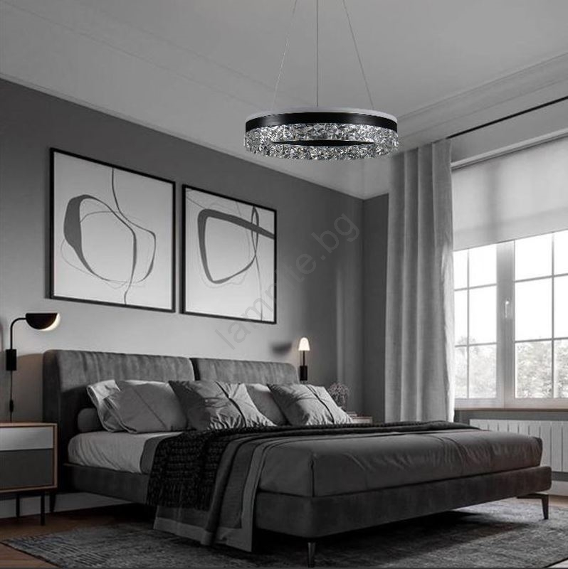 • LED Димируем кристален полилей на връв LED/90W/230V 3000-6500K черен + дистанционно управление