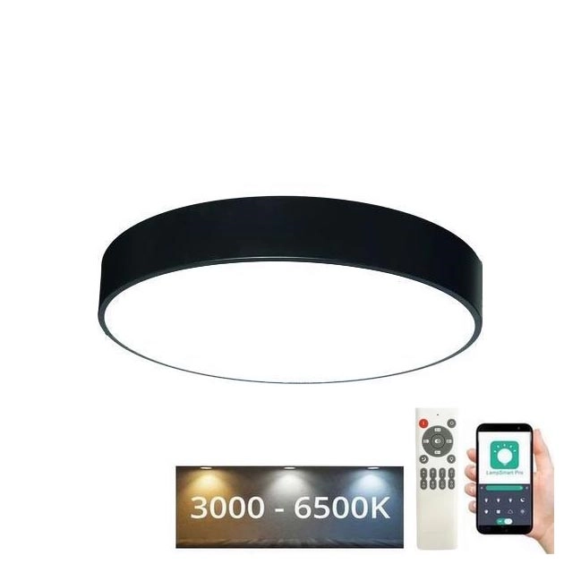LED Димируем плафон LED/50W/230V 3000-6500K черен + дистанционно управление