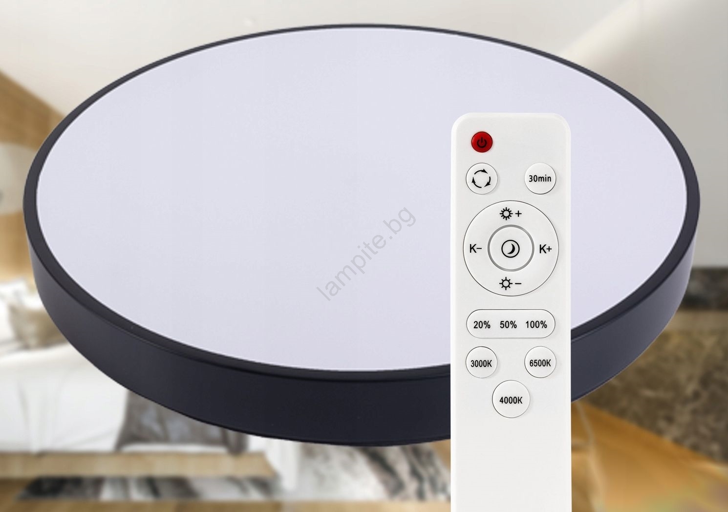 • LED Димируем плафон LED/60W/230V 3000-6500K Ø 60 см черен + дистанционно управление