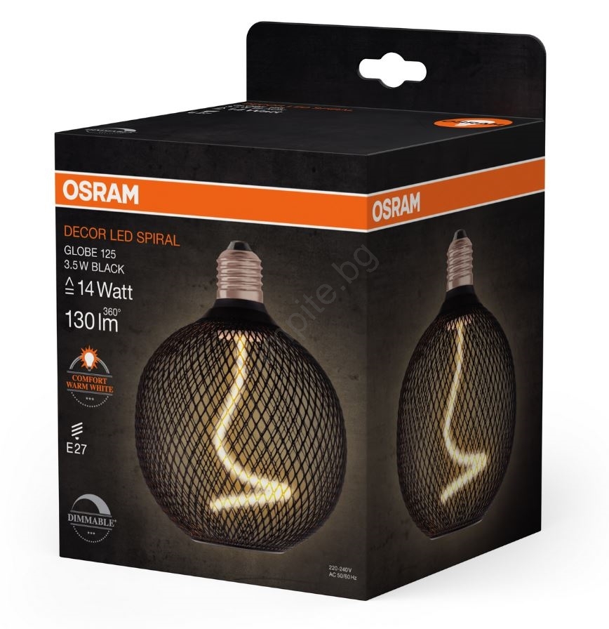 LED Димируема крушка DECOR FILAMENT G125 E27/3,5W/230V 1800K черен - Osram Висококачественият дизайн ще осигури перфектно осветление на вашия интериор. Категорията E27 е предназначена за крушки със същата капачка. В нашия електронен магазин можете да избирате между крушки с традиционна нажежаема жичка или съвременни LED крушки, които са по-енергийно ефективни и имат по-дълъг живот.