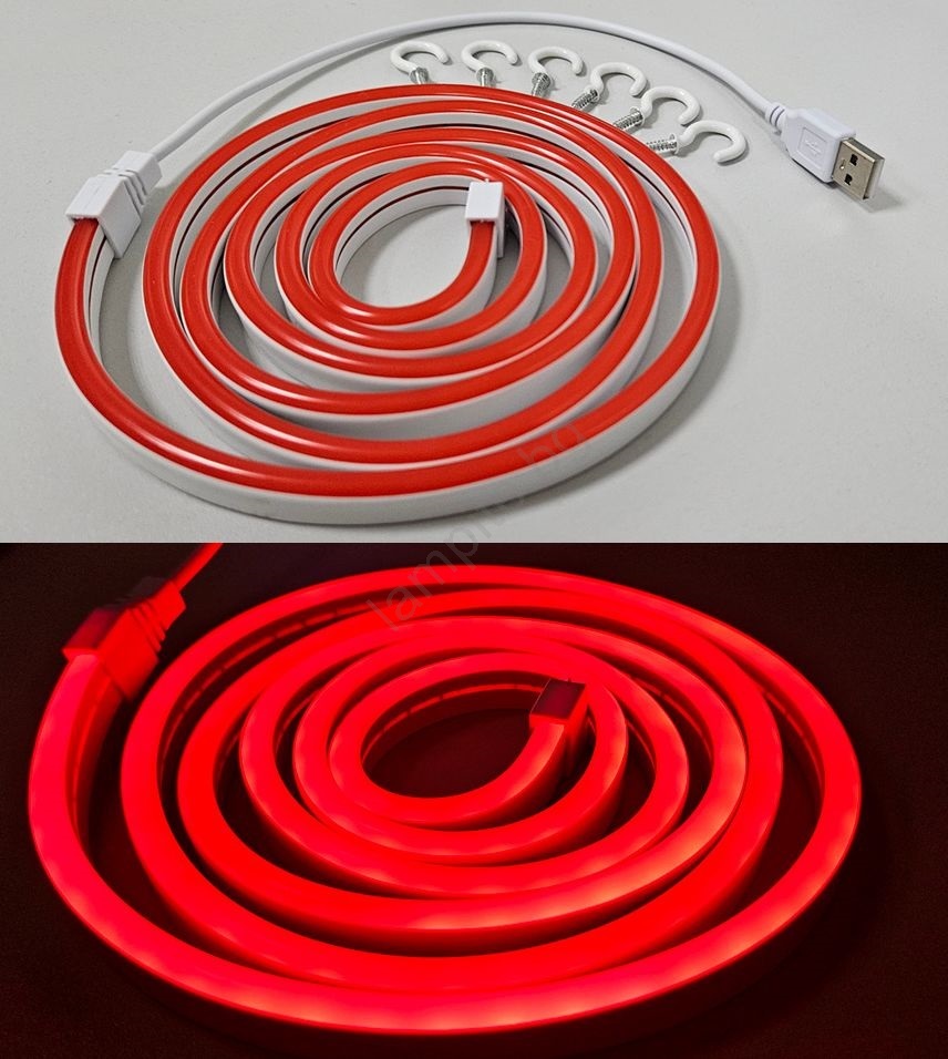 • LED Гъвкав лента NEON LED/5V USB 1,8 м червен