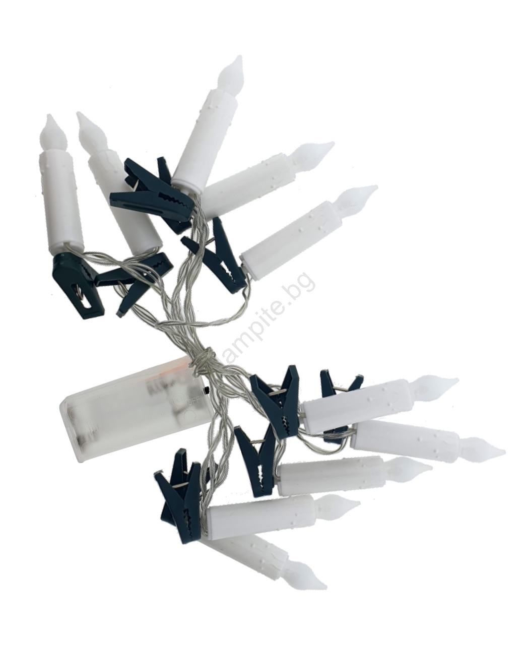LED декоративна гирлянда, 10xLED/2xAA, 1,65 m, топло бяло, свещи