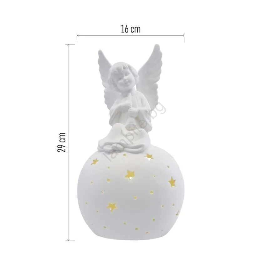 LED коледна декорация LED/0,4W/2xAA керамичен ангел е модерно решение за осветление на домa. Осветителното тяло използва Вграден LED модул, което осигурява ефективно и енергоспестяващо осветление. Дизайнът и качествената изработка гарантират дълъг живот на осветителното тяло и удовлетворение от покупката.