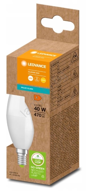 • LED крушка от рециклирана пластмаса B40 E14/4,9W/230V 2700K - Ledvance