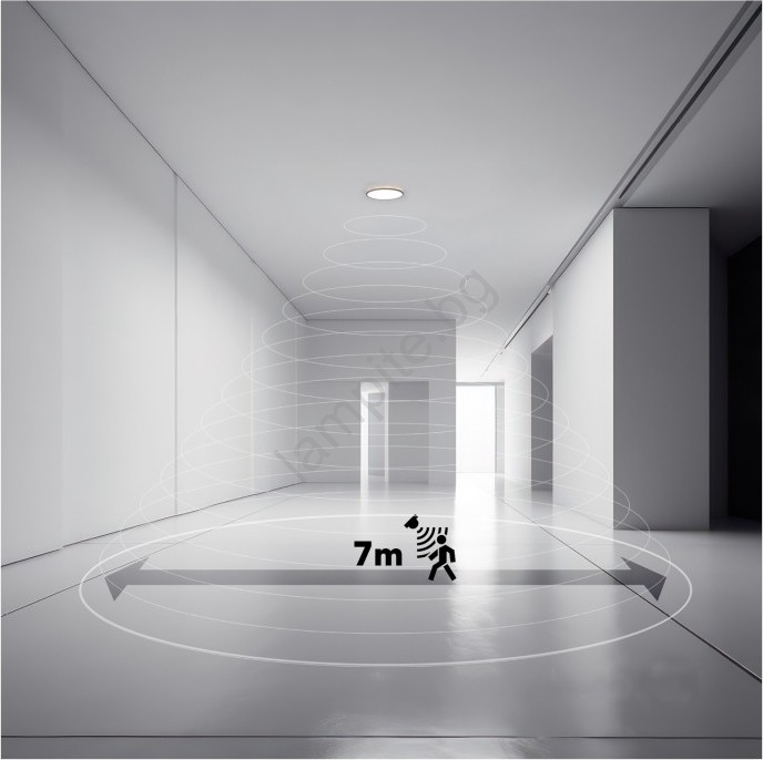 • Модерно таванно осветително тяло с микровълнов сензор за движение и сензор за сумрак.
