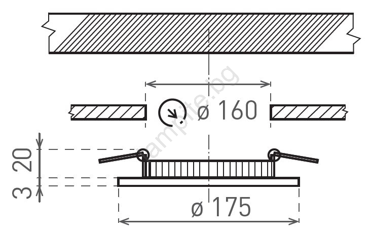 • Осветителят е оборудван с пружинни крепежни елементи, които позволяват лесен монтаж, например в гипсокартон.