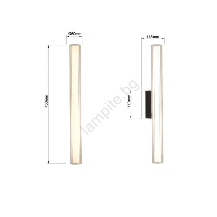 • LED осветление за огледало за баня LINEA, 8W, 230V, 3000/4000/6000K, IP44, 45 см, матов хром