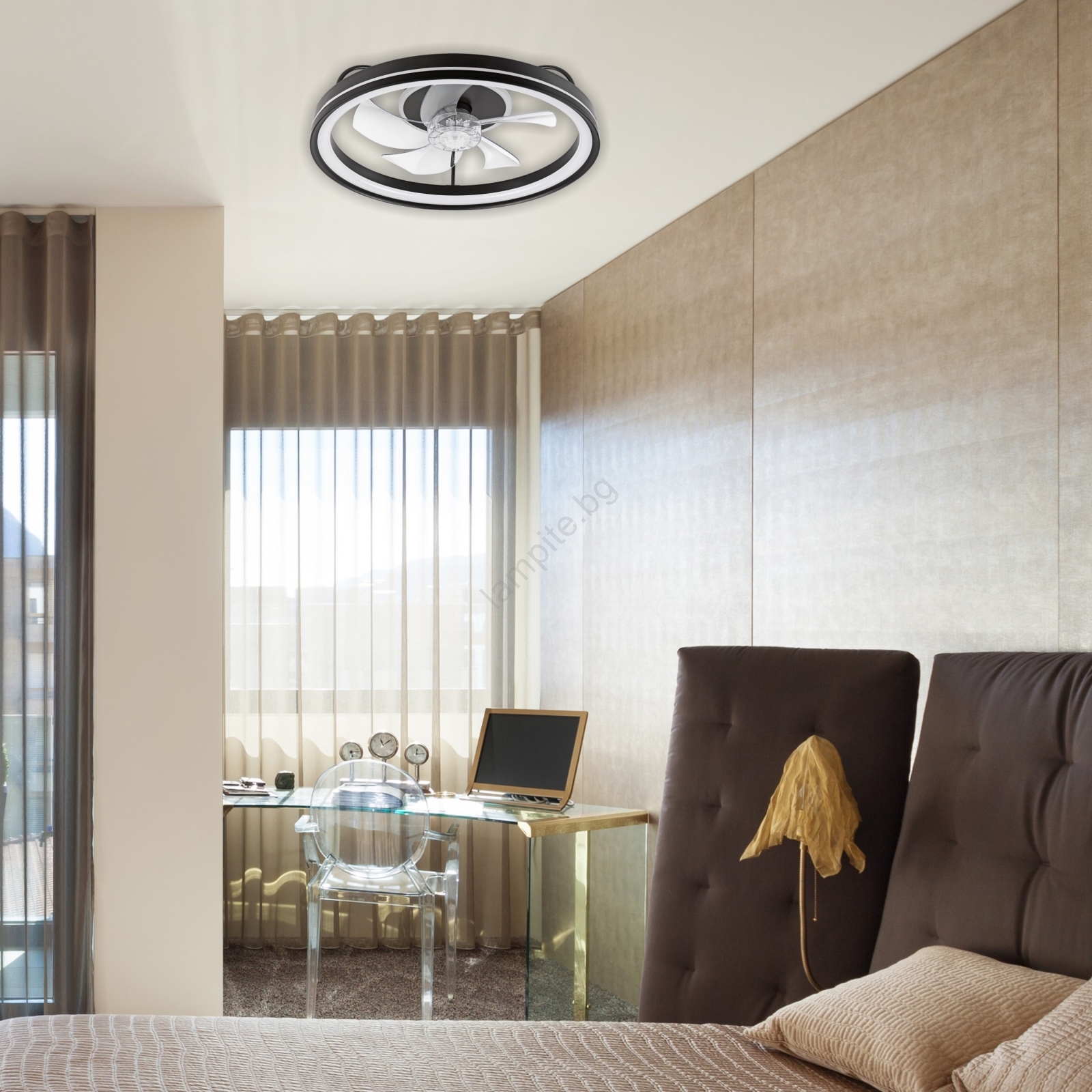 • LED Димируем плафон с вентилатор FARGO LED/37W/230V черен + дистанционно управление