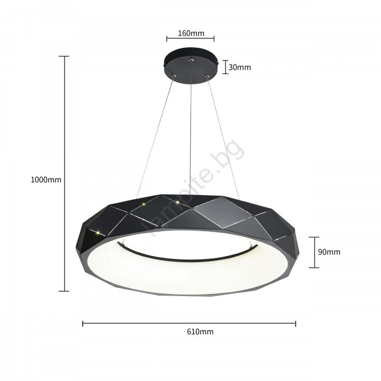 LED полилей на кабел REUS LED/36W/230V 4000K Ø 61 см черен