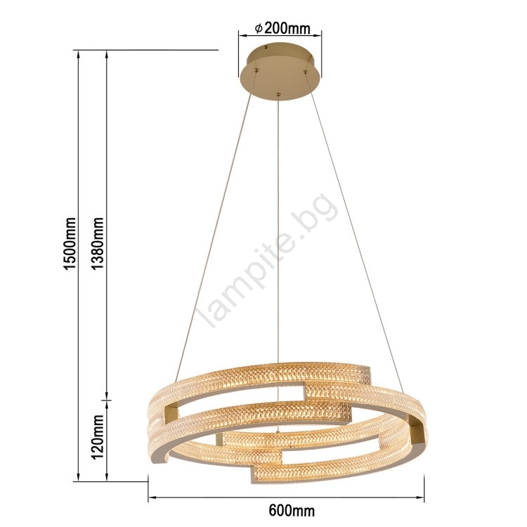 LED полилей с кабелно окачване TARJA LED/36W/230V 3000/4000/6000K Ø 60 см златен