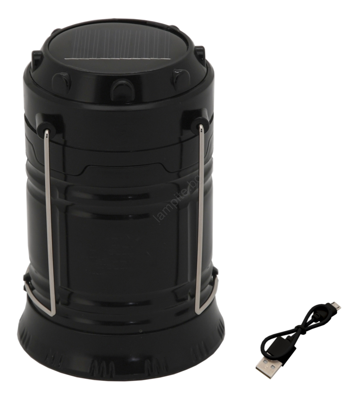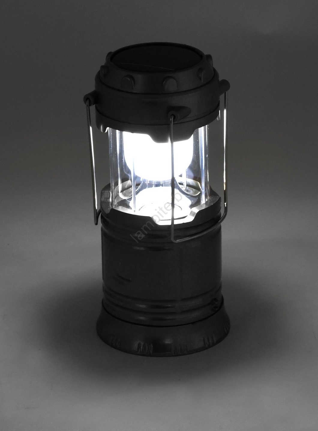 • Кампинг LED лампа с прибиращ се корпус, оборудвана с Li-Ion батерия и соларен панел.