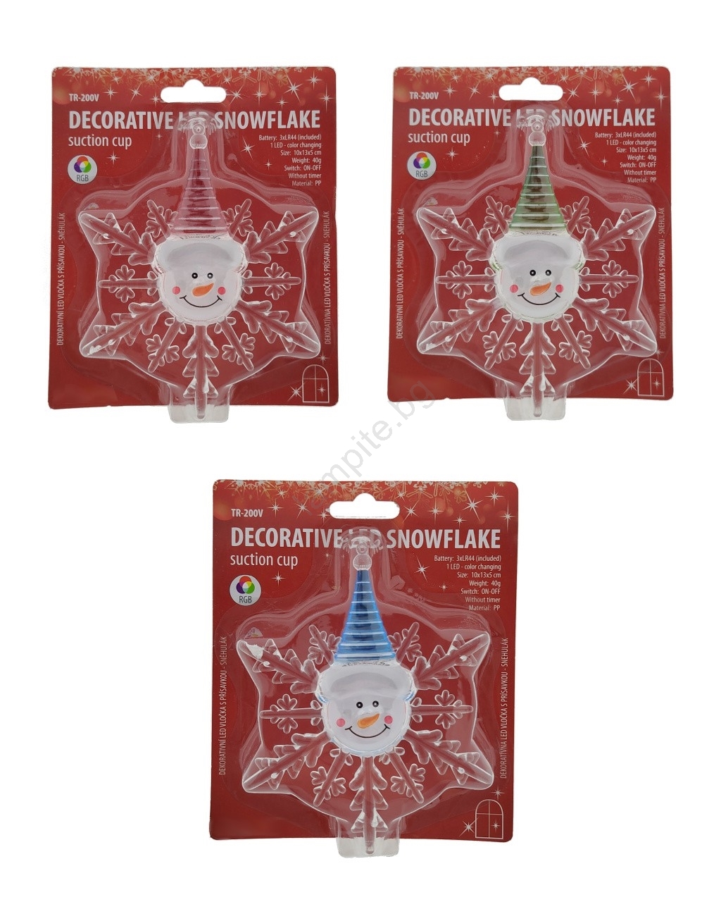 LED RGB Коледна декорация с присоска LED/3xLR44 снежен човек червен/син/зелен