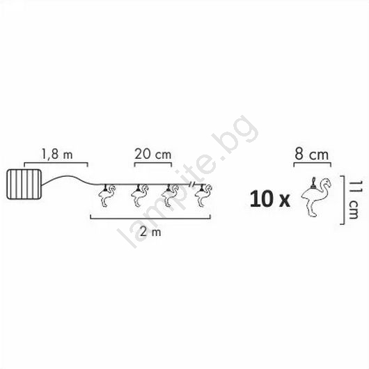 LED Соларна декоративна верига 10xLED/1,2V 300 mAh 3,8 m IP44 фламинго