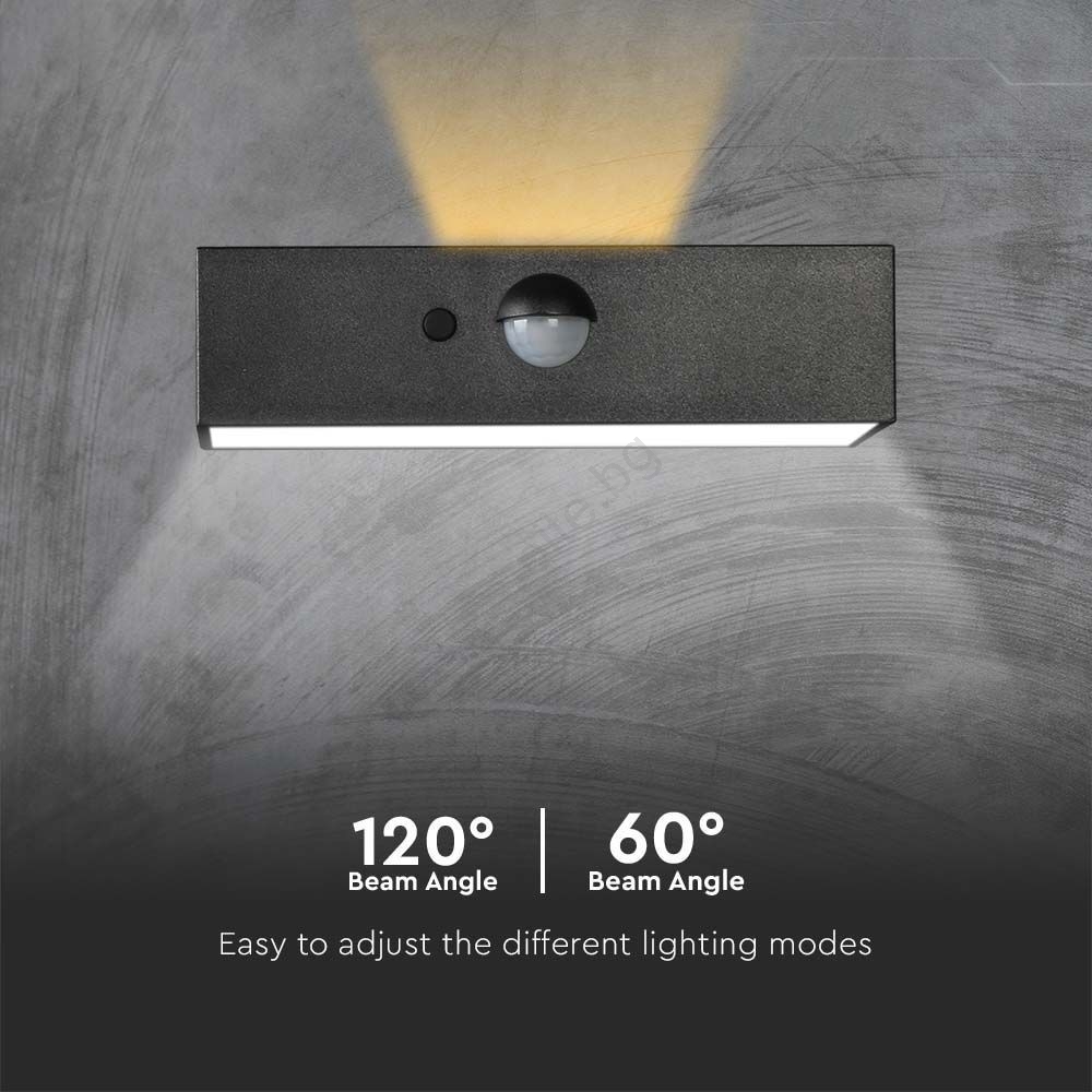 • LED Соларен аплик със сензор LED/3W/3,7V 3000K/4000K IP65 1200 mAh черен