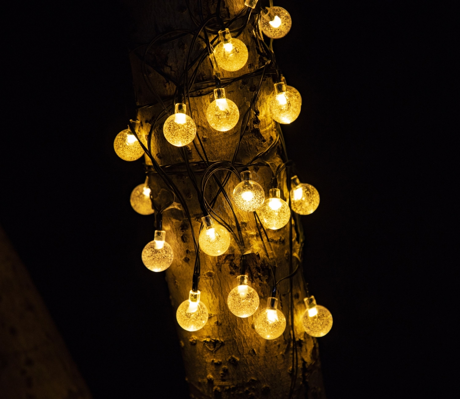LED соларна декоративна верига BUBBLE GLASS 20xLED/8 функции 4,85 м 600 mAh IP44 топла бяла светлина