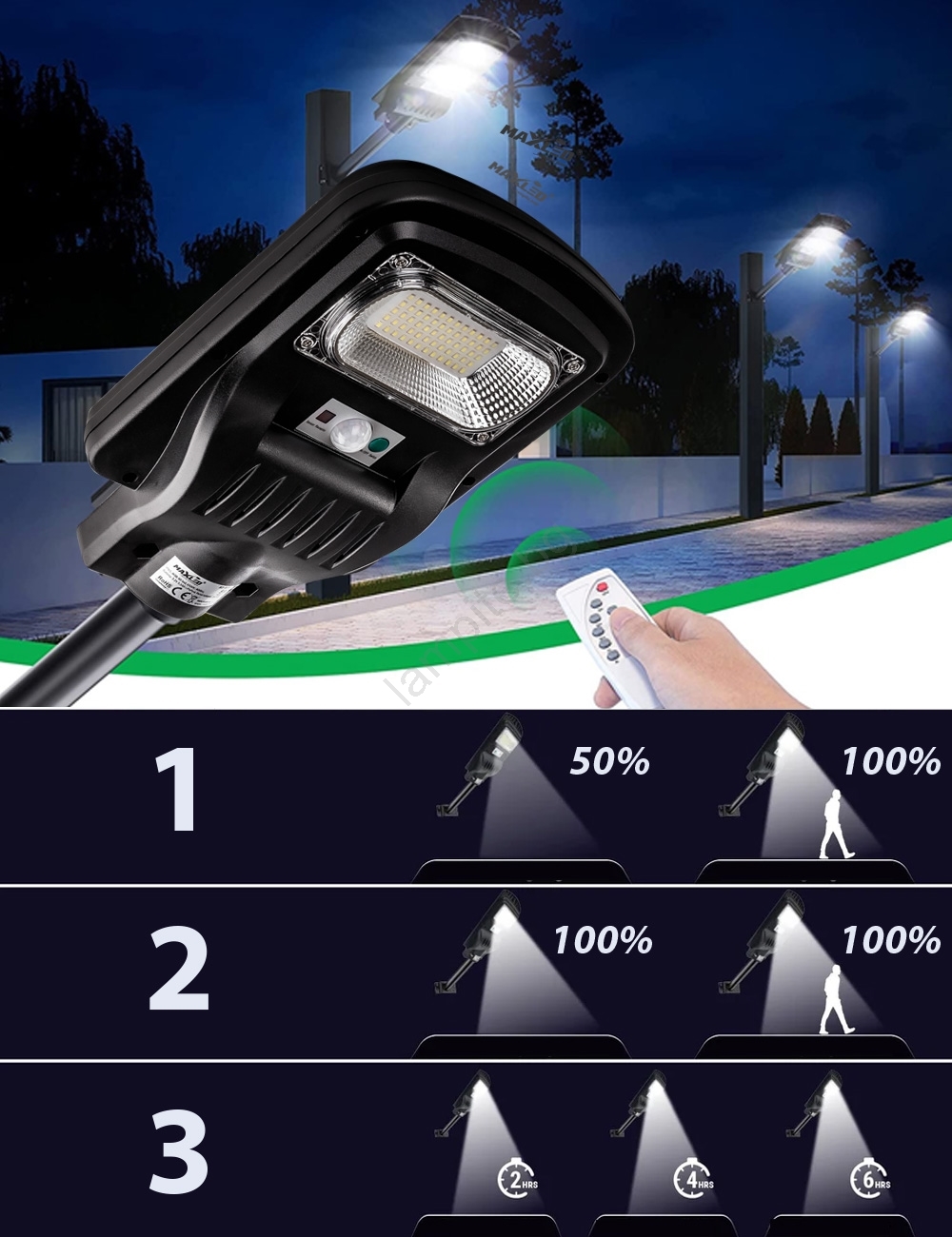 LED Димируема соларна улична лампа със сензор LED/60W/6V 5500 mAh 6500K IP65 черен + дистанционно управление