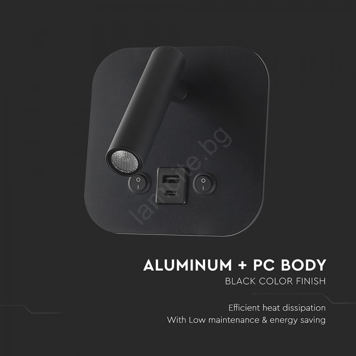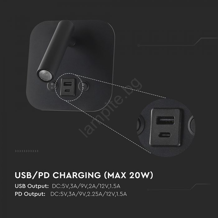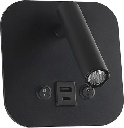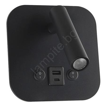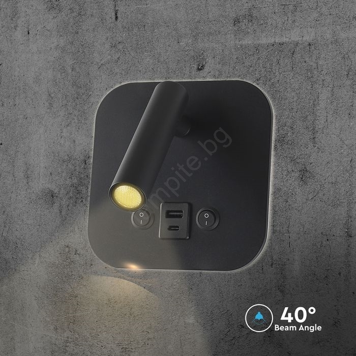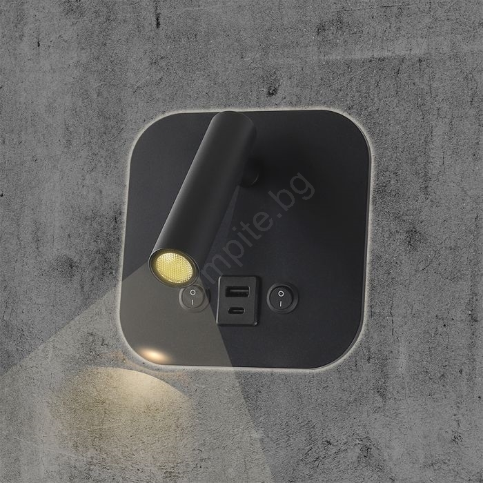 LED стенен спот с USB порт LED/8W/230V 3000K черен