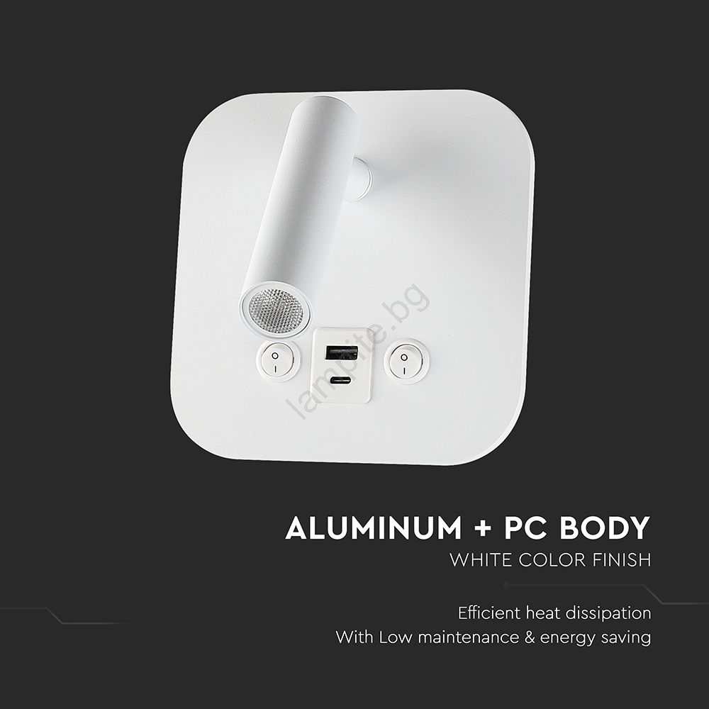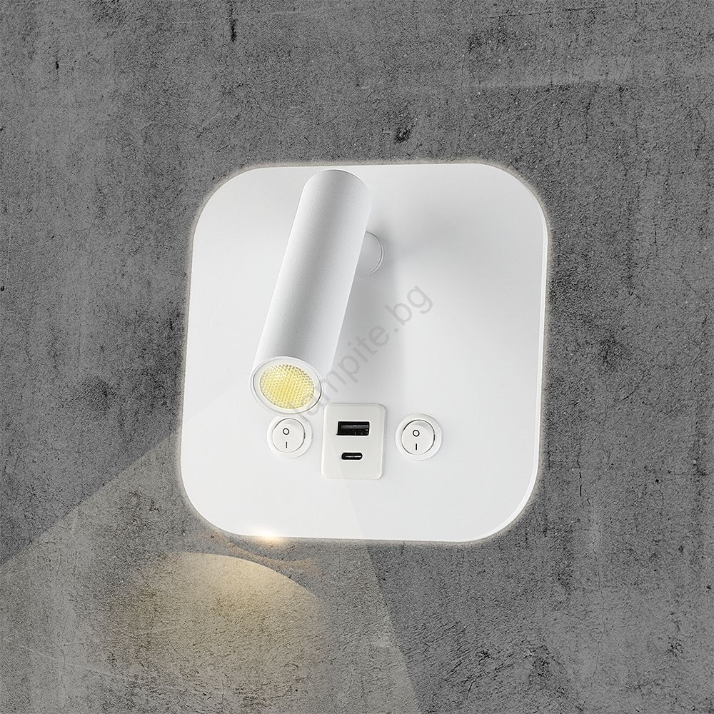 LED стенен точков аплик с USB порт LED/8W/230V 3000K бял