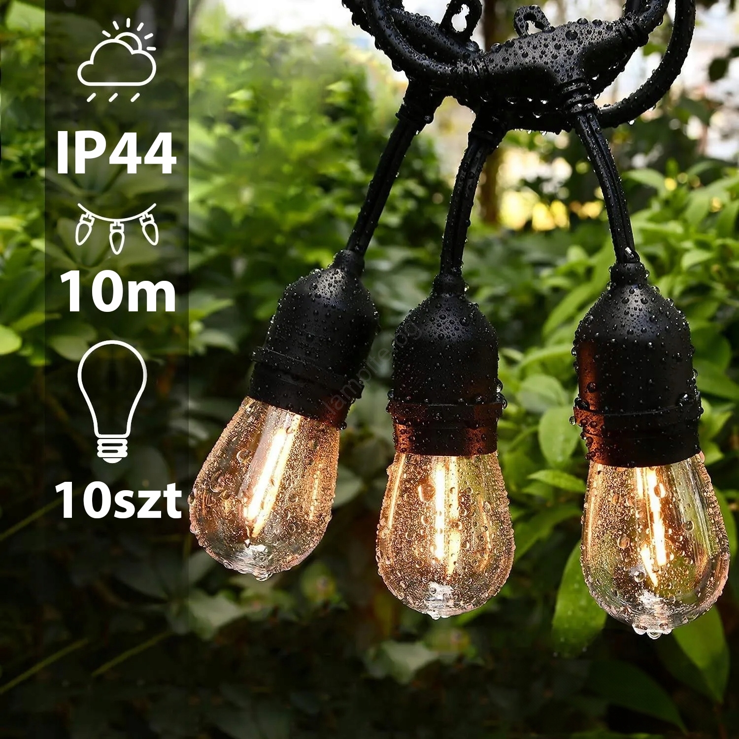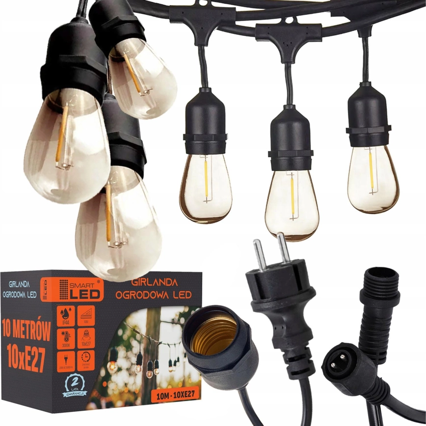 LED Външна декоративна гирлянда 10xE27/1W/230V 10,94 m IP44 черна