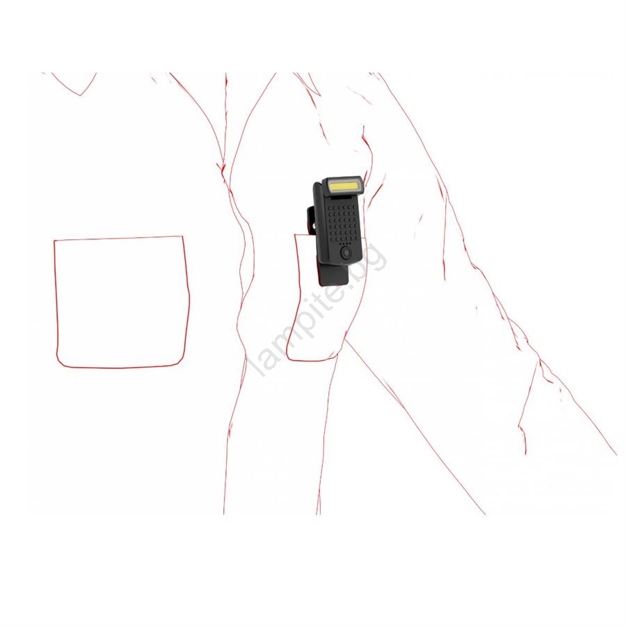 • Благодарение на клипса и магнита фенерът лесно се закрепя на различни повърхности.