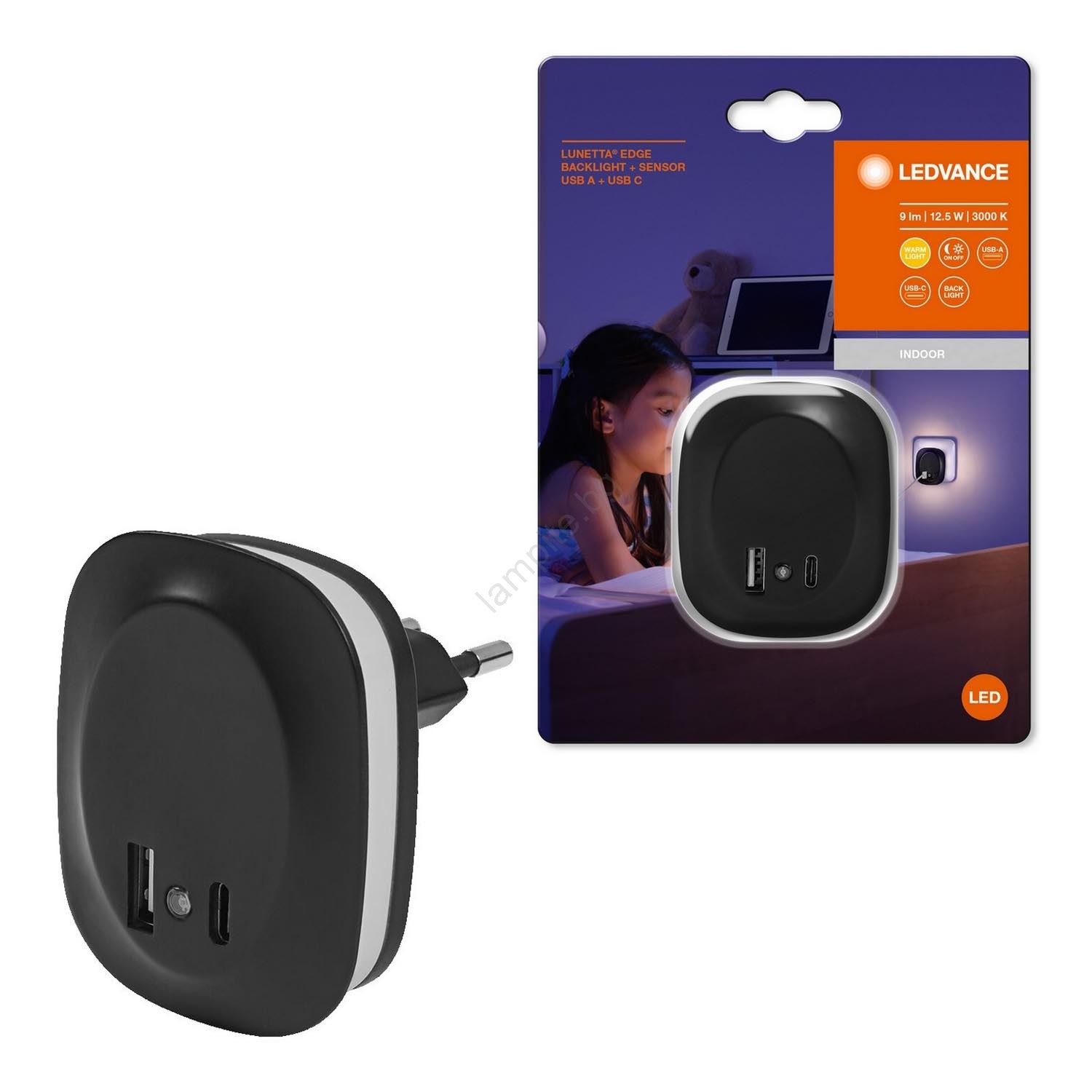 • Ledvance - LED Нощна лампа за контакт със сензор и USB LUNETTA LED/12,5W/230V 3000K черен