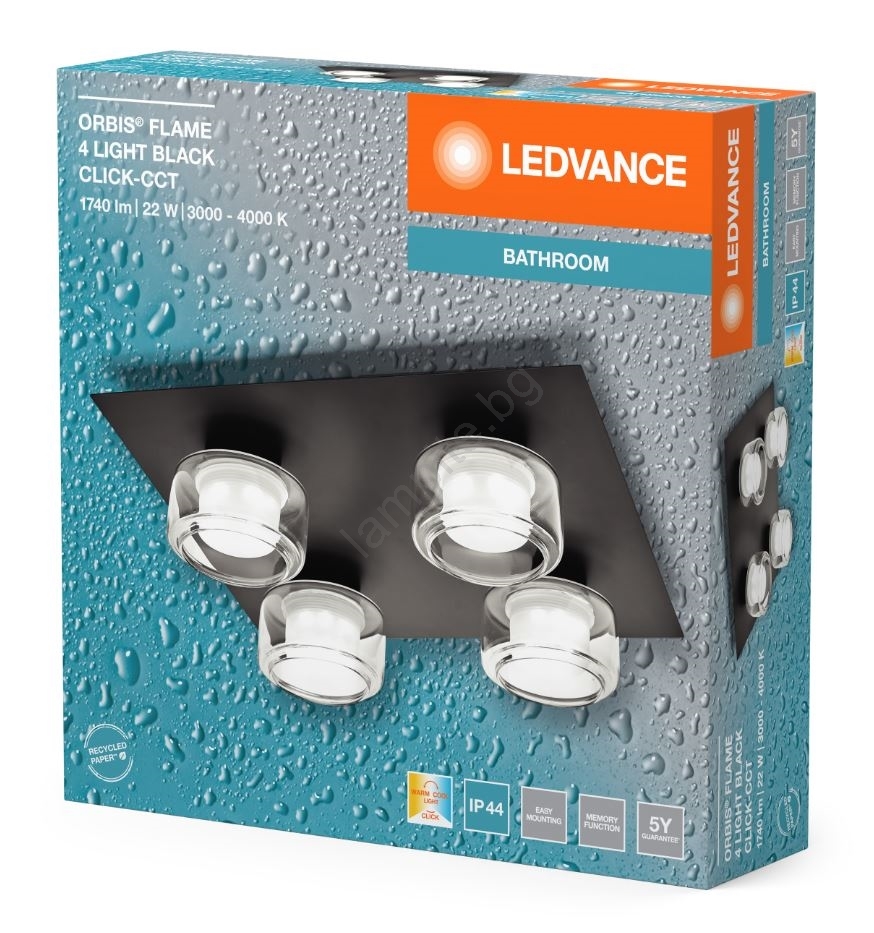 • Ledvance - LED Плафон за баня ORBIS FLAME 4xLED/5,5W/230V 3000/4000K IP44 черен