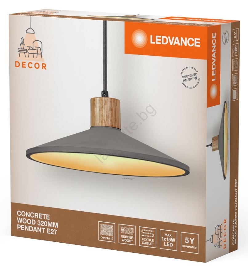 Ledvance - Пендел DECOR CONCRETE 1xE27/15W/230V Ø 32 см бетон сив се отличава с приятен и функционален дизайн.  Подходяща е крушка с цокъл E27. Тук можете да закупите и други крушки на изгодни цени. Ще имате интересно допълнение към дома си.