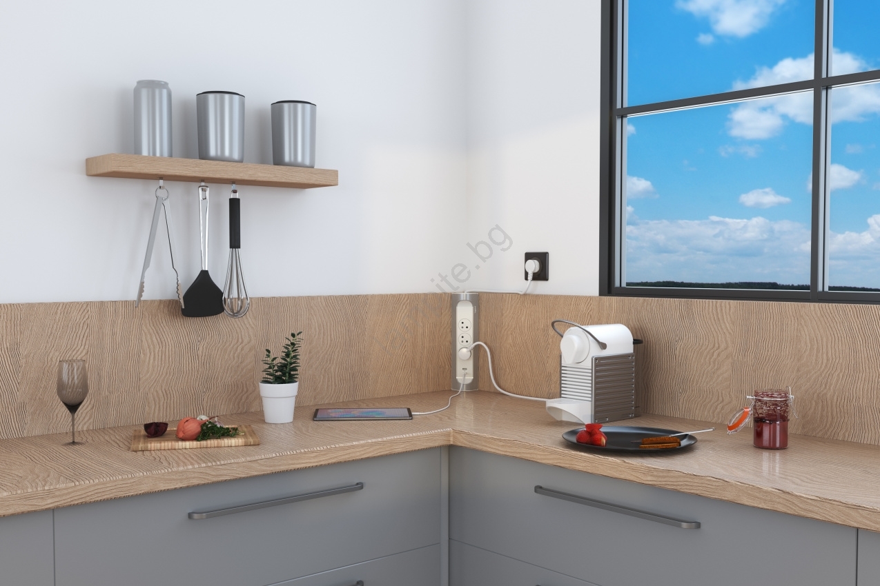 • Ъглово разширение с три контакта и два USB порта.