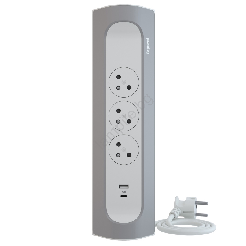 Legrand 049406 - Разклонител 3Z Тип E + USB-A + USB-C 1m сребрист/бял