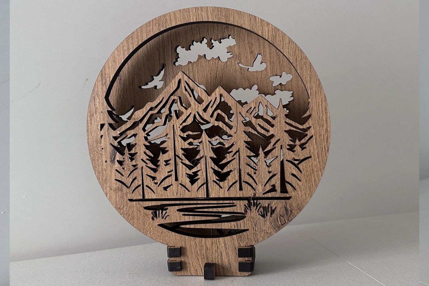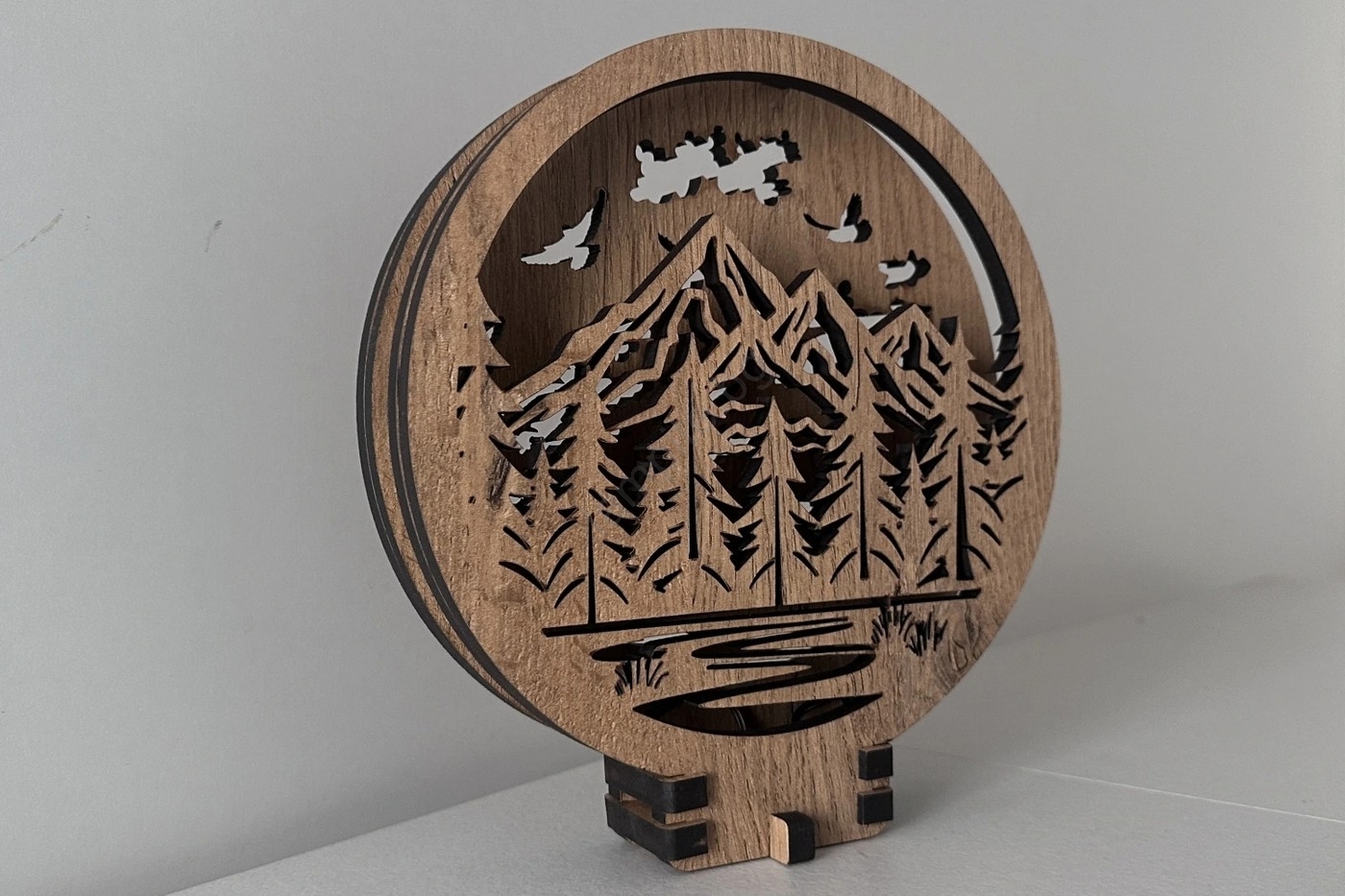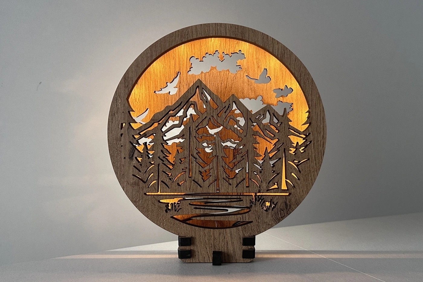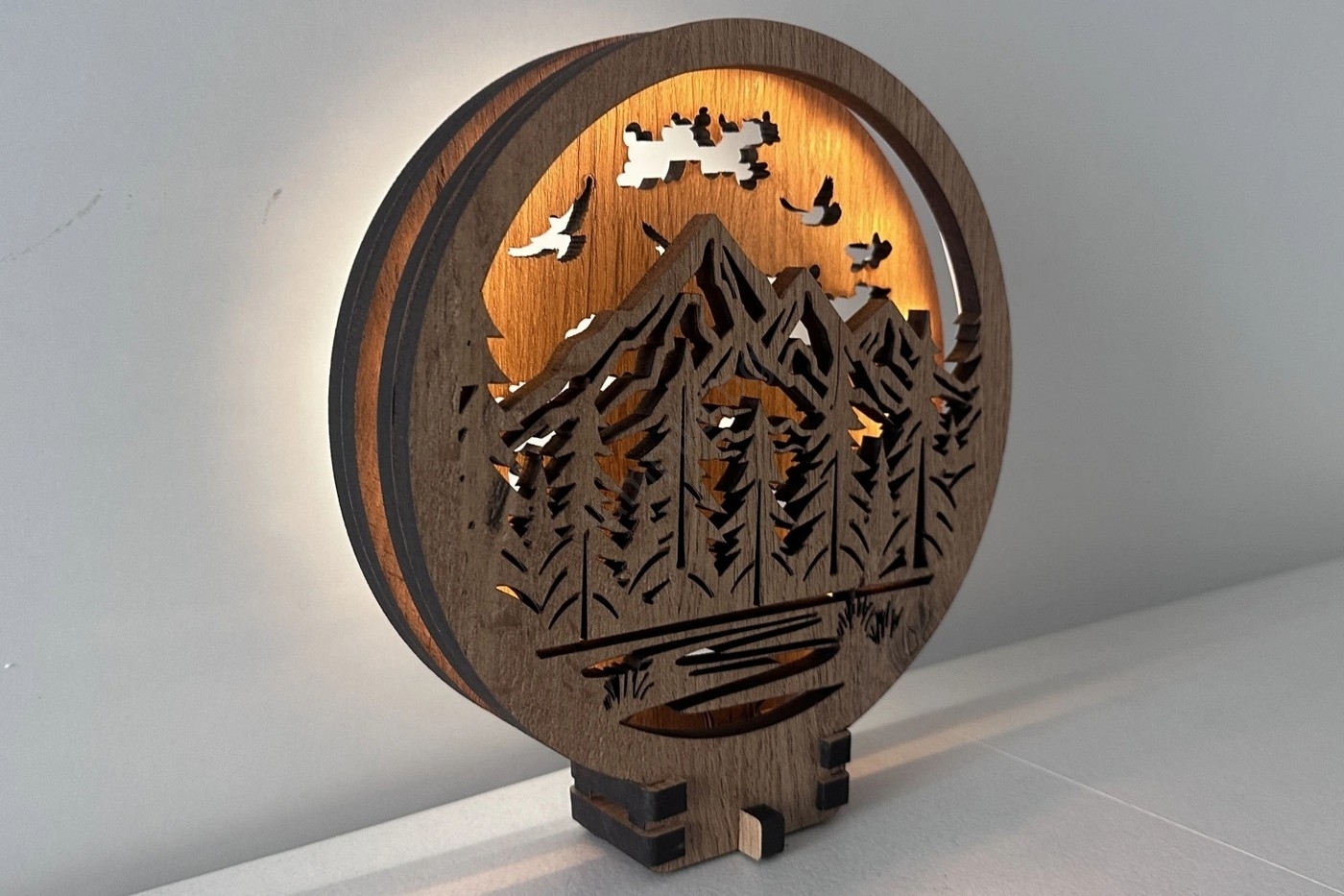 Li-Go 23583/DUB2 - Регулируема LED настолна декоративна лампа LED/12W/230V 20x22 cm дъб/Планини и гора