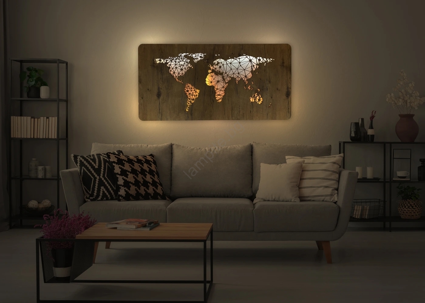 Li-Go 4457/A/4 - Димируема LED стенна декорация LED/10W/5V 30000 mAh 120x60 cm дъб/Световна карта