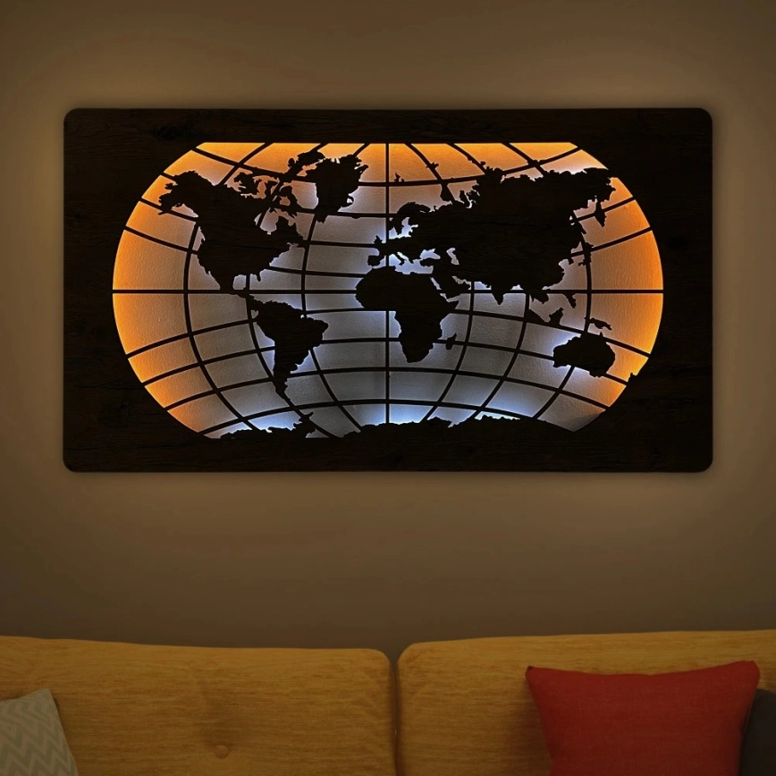 Li-Go 4868/DUB2 - LED стенна декорация с възможност за димиране LED/24W/230V 110x60 cm дъб/Карта на света — паралели