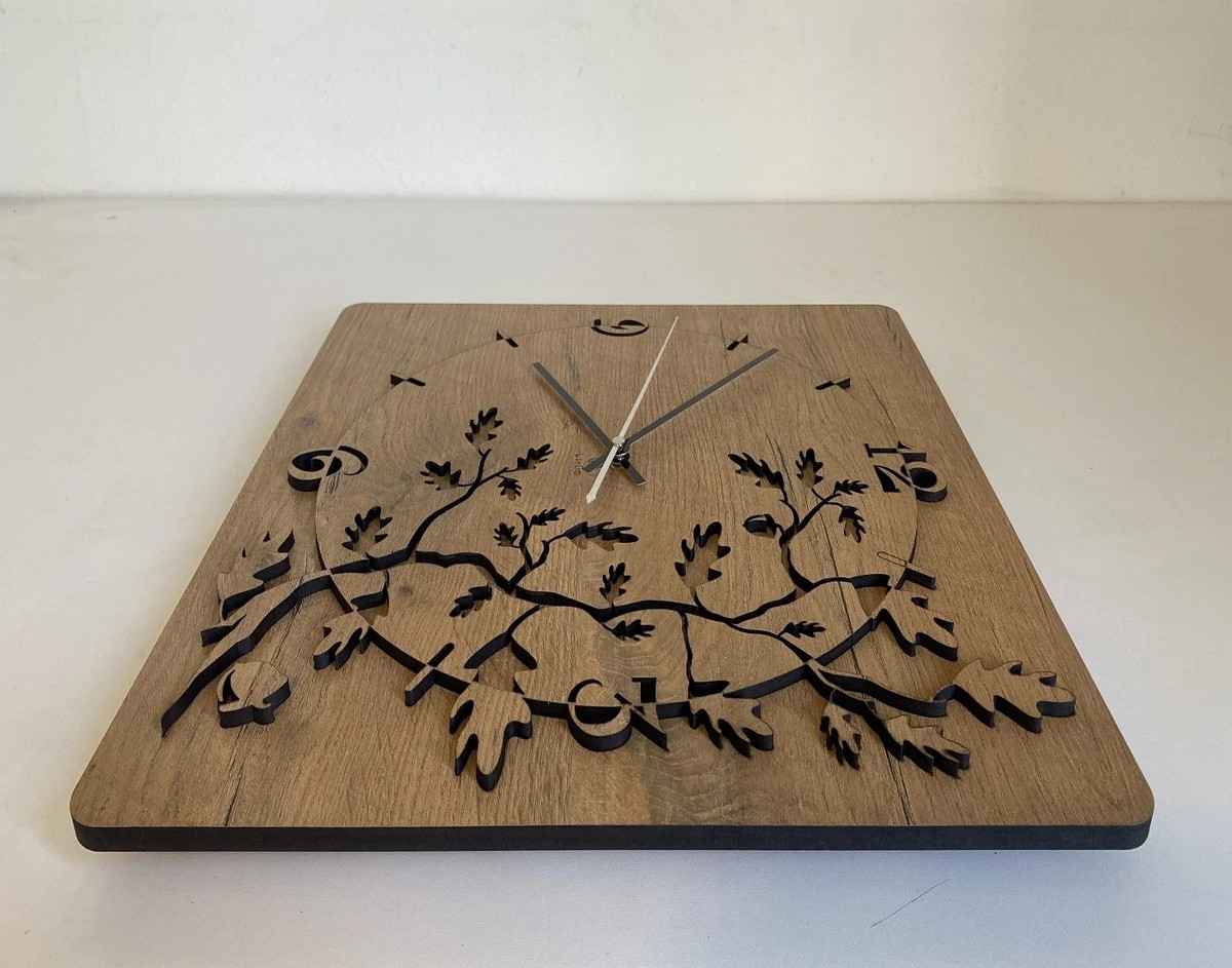 • Дървен часовник с уникален резбован мотив.