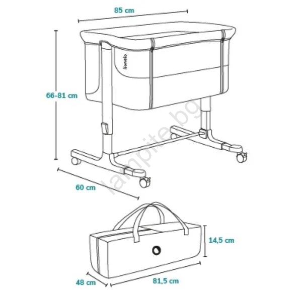 • Многофункционално бебешко креватче 3 в 1: свободно стоящо креватче, странично легло и люлка.
