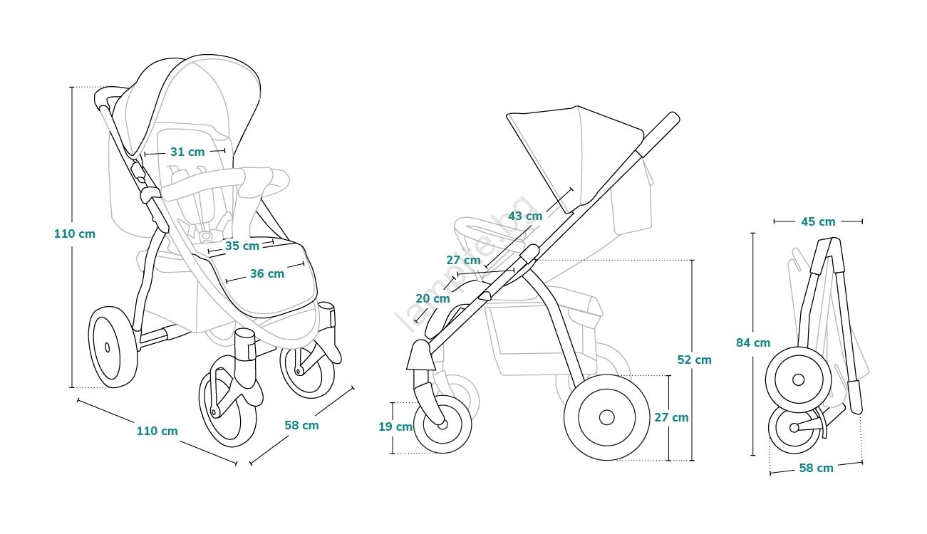 • В комплекта са включени мрежа против комари, калъф за краката и държач за чаша, които повишават комфорта при всяка разходка.