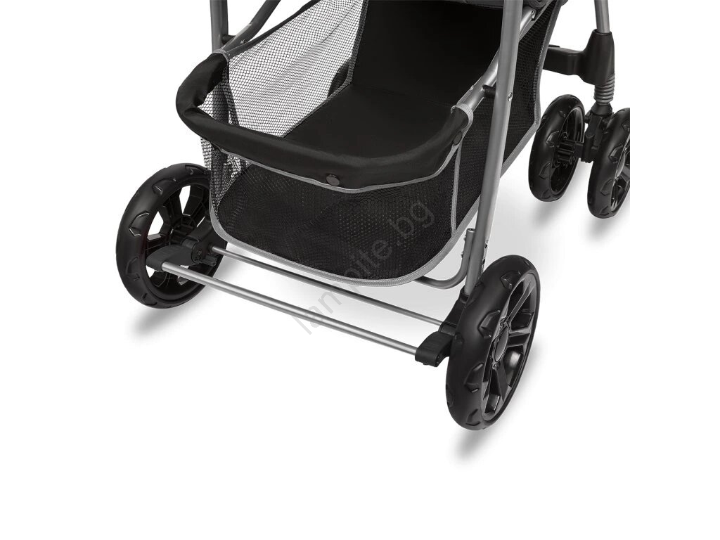 • Голяма зона за почивка (до 91 см в разгънато състояние) и висока сенник осигуряват комфортна употреба на количката дори за по-големи деца.