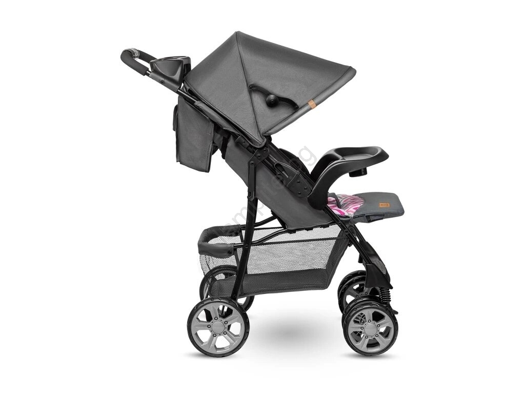 • Голяма зона за почивка (до 91 см в разгънато състояние) и висока сенник осигуряват комфортна употреба на количката дори за по-големи деца.