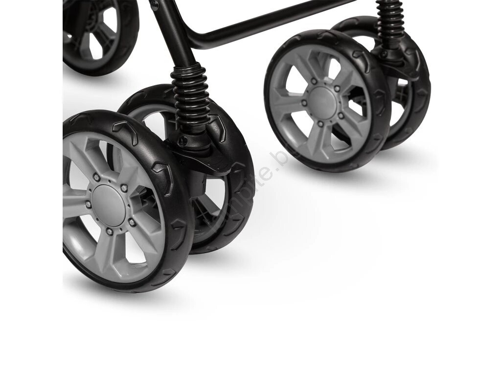 • Предните колела са допълнително въртящи се на 360° за по-голямо удобство, с възможност за заключване при движение направо.