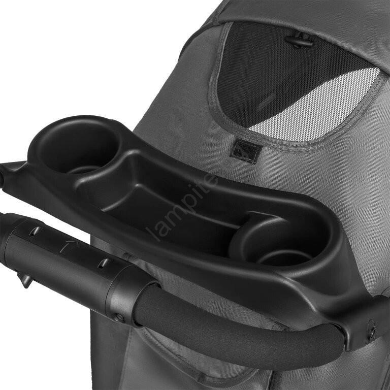 • Количката разполага с предпазна преграда във формата на поднос, която позволява на детето да остави бутилка или закуска по време на разходка.
