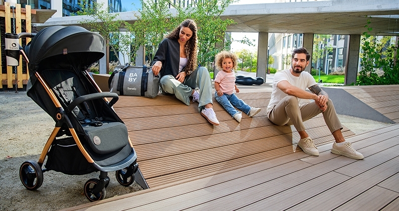 • Голям XXL сенник с филтър UPF50+ и водоустойчиво покритие осигурява комфорт при всяка разходка.