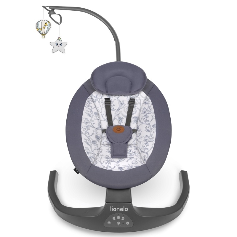 • Lionelo - Детска люлка с мелодия RALF, захранване 4xAA, с дистанционно управление, цвят Grey Concrete