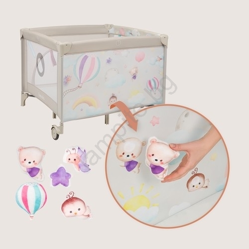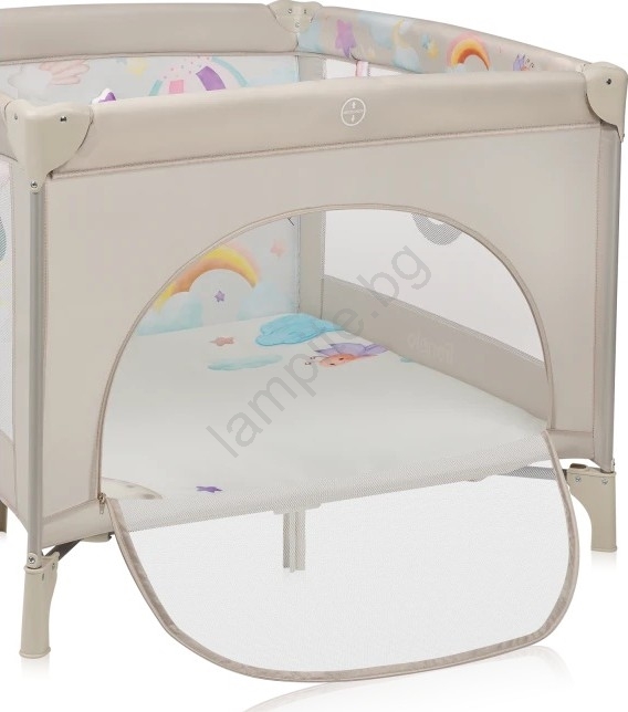 • Стените са от прозрачна и дишаща мрежа, която позволява наблюдение на детето.