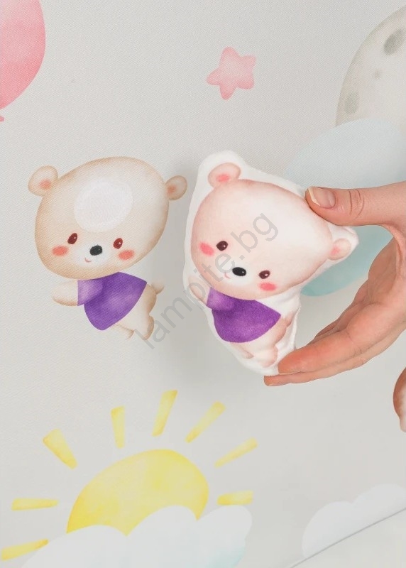 • Разполага с вградена постелка с цветни принтове на животни и играчки с велкро, които стимулират любопитството и развиват въображението и фината моторика на детето.