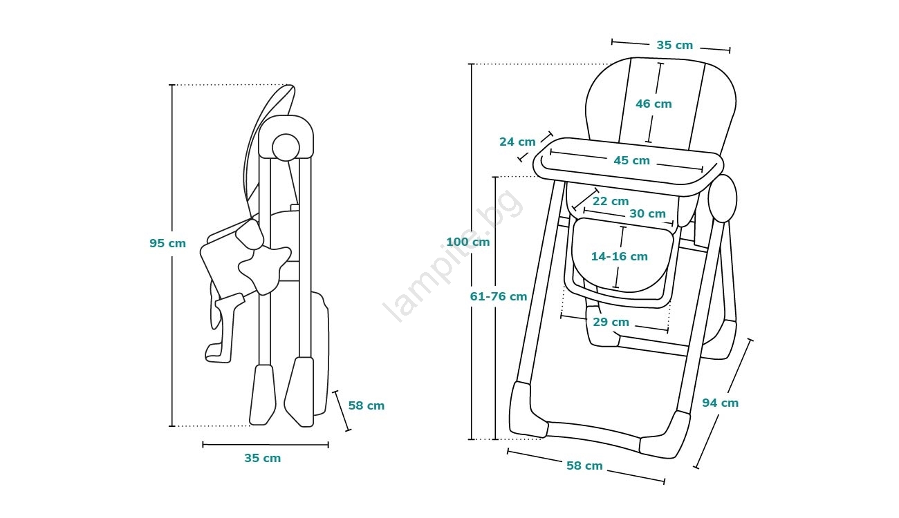 • Столче за хранене, подходящо за деца от 6 месеца до 3 години.