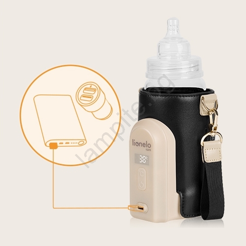 Lionelo - Преносим нагревател за шишета с презареждаща се батерия THERMUP GO EVO 18W/5V черен/бежов